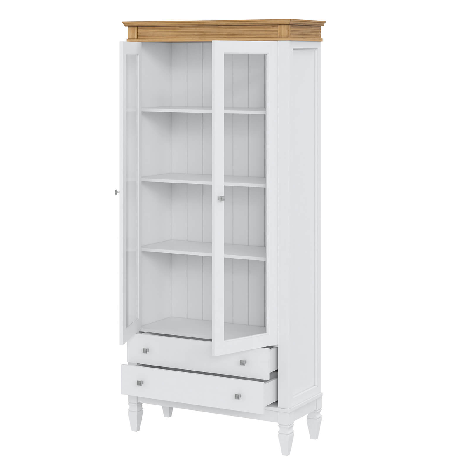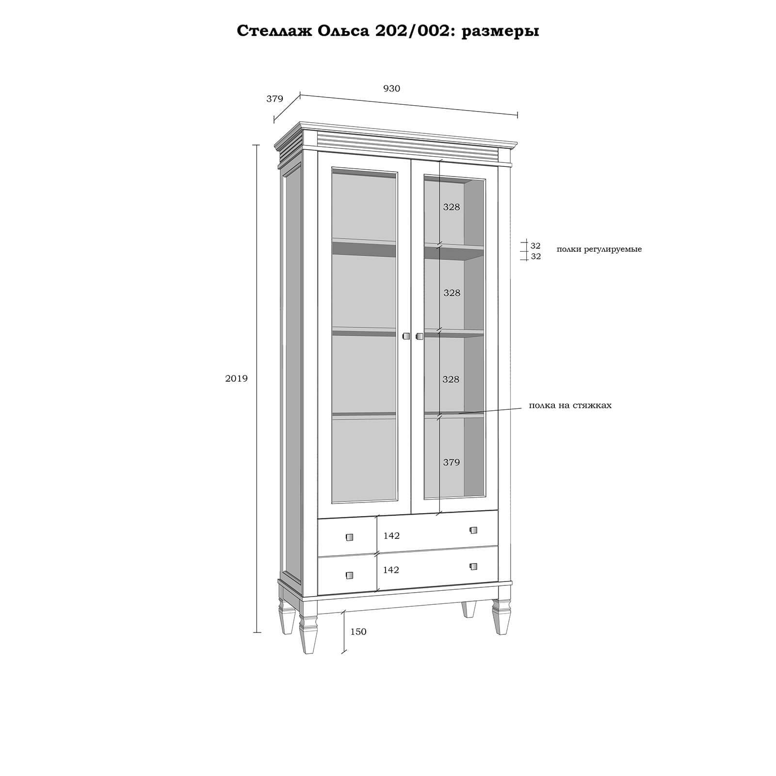 Стеллаж «Ольса» - отличный вариант для хранения любимых книг. Здесь они будут в полном порядке и всегда под рукой. Оснащен двумя ящиками и четырьмя вместительными полками за двумя стеклянными распашными дверями. Устойчиво держится на высоких ножках. Хороший вариант для гостиной, детской комнаты или кабинета. Может использоваться самостоятельно или в сочетании с другими предметами из этой коллекции.
