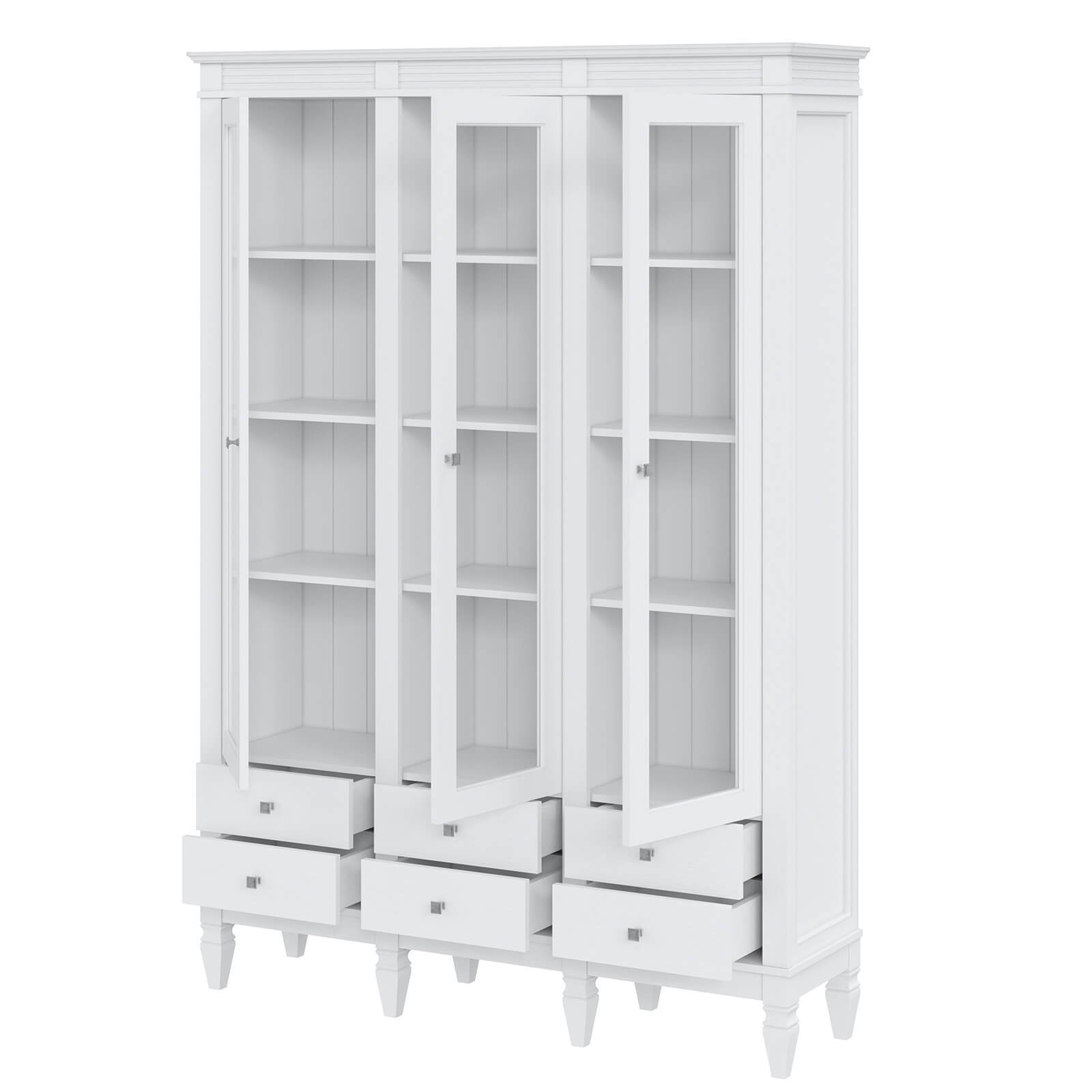 Стеллаж «Ольса» 303/006 из соснового массива – для тех, кто приводил большую библиотеку, коллекцию сервизов или сувениров. Выполнен в форме витрины с распашными дверями и стеклянными вставками. Дверные петли изготовлены австрийской фирмой Blum. Ручки - итальянцы Giusti. В нижней части находятся выдвижные ящики, которые можно безопасно хранить за счет доводчиков. Изделие подходит для многих современных стилей интерьеров, например, скандинавского или лофта.